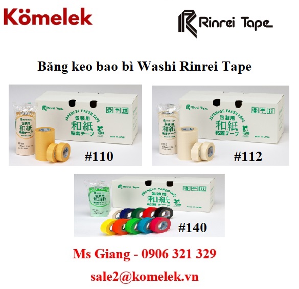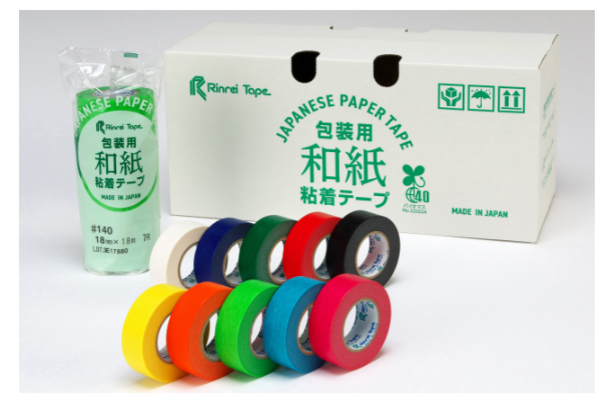 Băng keo bao bì Washi Rinrei Tape. Được làm bằng giấy gạo Nhật Bản (Washi), sử dụng được trên mọi loại bề mặt, bền bỉ với điều kiện không khí trong nhà, không thấm dung môi và hầu như không để lại cặn dính sau khi bóc.