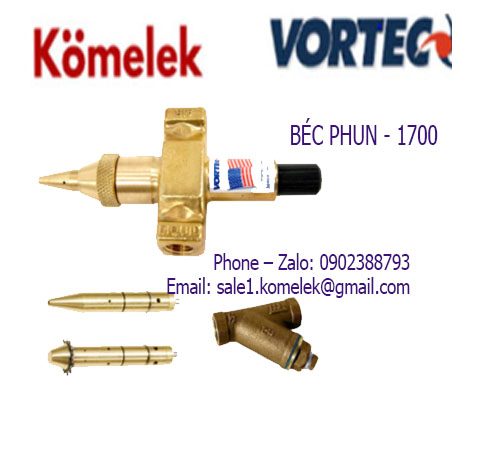 Vòi phun Vortec BÉC PHUN – 1700 cung cấp các tia phun có kích thước giọt siêu mịn để làm mát bay hơi, phun sương, tạo ẩm và làm ướt. Vượt trội so với vòi thủy lực và áp điện thông thường, vòi phun tạo ra các kiểu phun có thể khuếch tán hoặc định hướng rộng rãi. Dòng chất lỏng bị cuốn theo