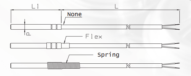 - Vỏ bảo vệ tiêu chuẩn bằng thép không gỉ Ø6×0,5 mm, AISI 316.