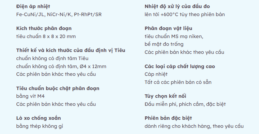 - Cặp nhiệt điện theo DIN EN 60584
