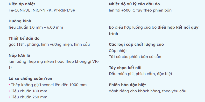 - Cặp nhiệt điện theo DIN EN 60584