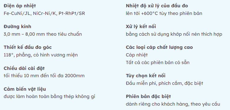 Tính năng sản phẩm cảm biến nhiệt độ Graff GmbH
