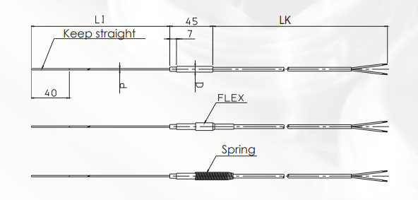 NB! Phải giữ thẳng cách đầu 40 mm. đại lý senmatic - Chỉ hạt dao đo ø6 mm mới có sẵn với 2×Pt và chỉ 3 dây dẫn.