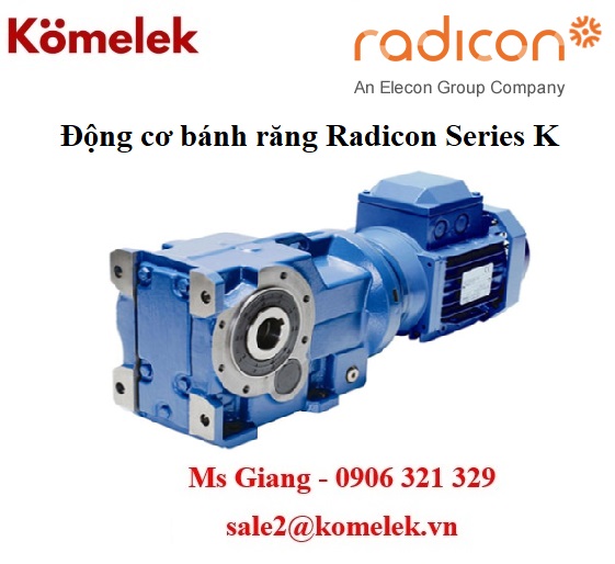 Động cơ bánh răng Radicon Series K – Động cơ bánh răng côn góc phải có khả năng chịu tải cao, tăng hiệu suất so với bộ trục vít, vận hành êm ái và tin cậy.