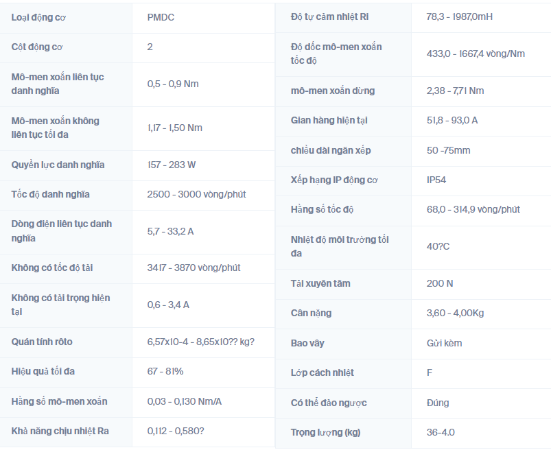 Thông số kĩ thuật động cơ nam châm vĩnh cửu