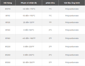 Đồng hồ đo nhiệt độ có những mã hàng khác nhau: