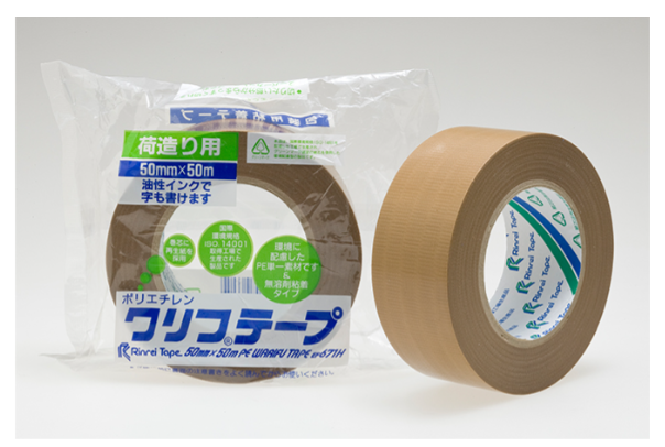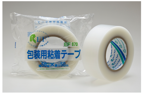 Keo dán bao bì Rinrei Tape. Được làm bằng “vải PE/PET”, có thể cắt thẳng bằng tay và có khả năng chống nước.