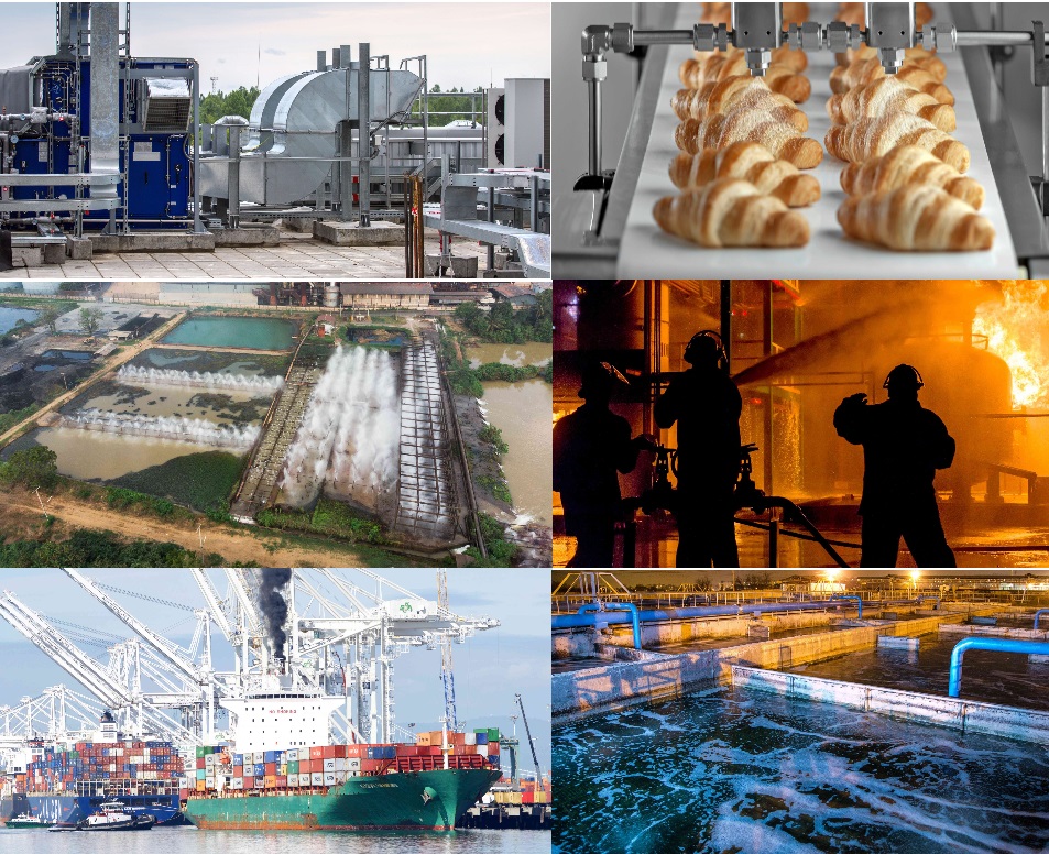 Năng lượng, xử lý nước, xử lý hóa chất, chế biến hóa dầu và chế biến thực phẩm và đồ uống.