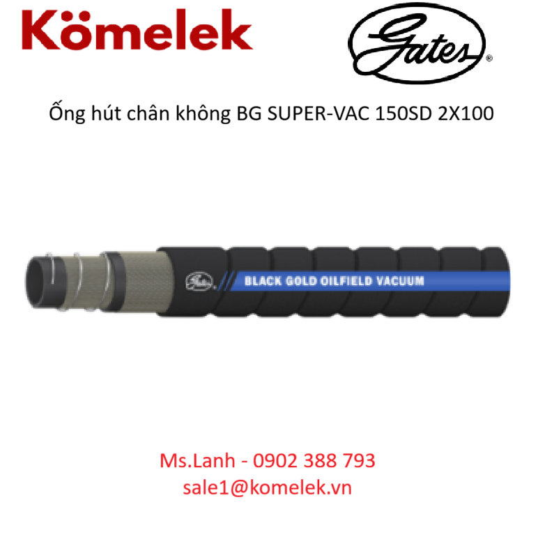 Ống hút chân không BG SUPER-VAC 150SD 2X100 là ống cao su hút chân không công nghiệp, dùng để hút dầu, bùn, nước thải và các chất lỏng trong điều kiện chân không cao và tải nặng.