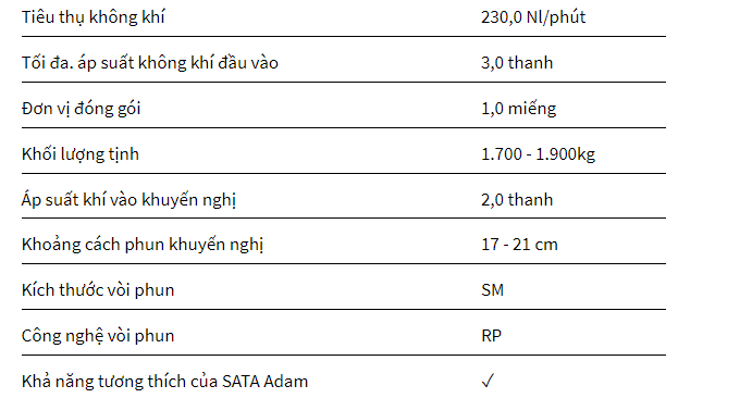- Với kích thước vòi phun “SM” (khoảng 1,3), loại súng này có thể được sử dụng cho hầu hết mọi vật liệu phun – chỉ cần điều chỉnh áp suất trong cốc theo độ nhớt.