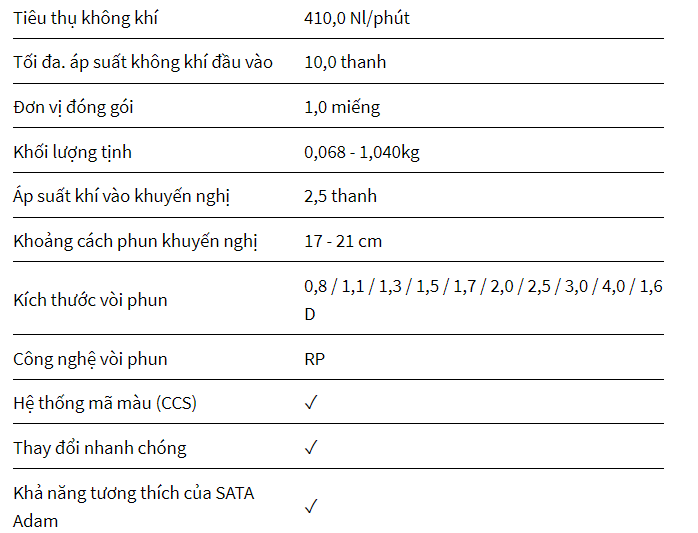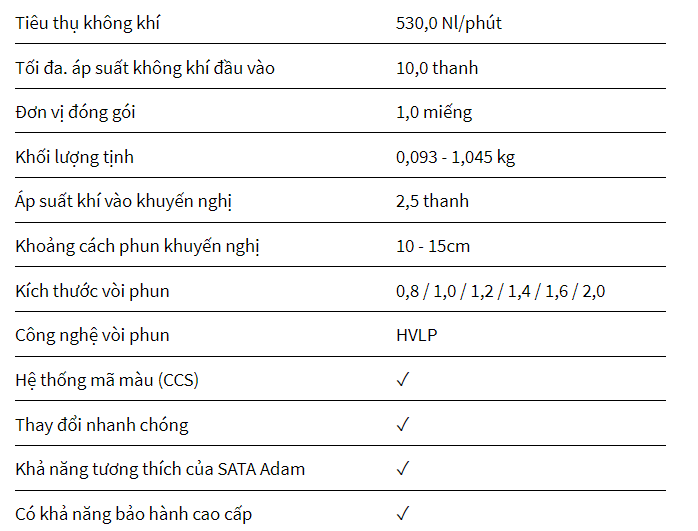 Thông số kỹ thuật HVLP