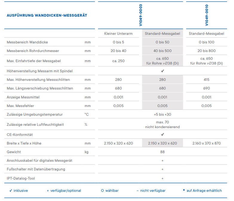 Chiều cao của nĩa đo có thể được điều chỉnh bằng tay quay. Một cỗ xe có thể di chuyển được cho phép nĩa đo được di chuyển theo hướng dọc. Điều này có nghĩa là phép đo độ dày thành ống có thể được thực hiện tại bất kỳ điểm nào trên đoạn ống. Đối với các ống có đường kính nhỏ hơn, một phụ tùng tương ứng cho tay dưới của nĩa đo sẽ được cung cấp kèm theo.