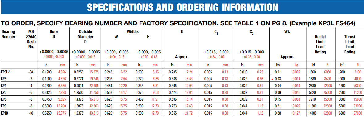 Các vòng và bi ổ trục điều khiển khung máy bay được làm bằng hợp kim ổ trục cứng, AISI 52100, với tất cả các bề mặt lộ ra ngoài, ngoại trừ lỗ ổ trục, nắp và vòng đệm, được mạ để chống ăn mòn.